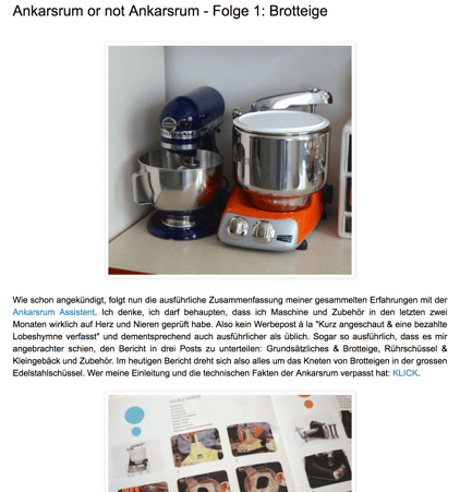 Immer wieder findet man Überraschendes auf dem interessanten Food-Blog. Uns interessiert natürlich ganz speziell, wie der Ankarsrum Assistent ankommt. Den umfangreichen Erfahrungsbericht hier verfolgen.
